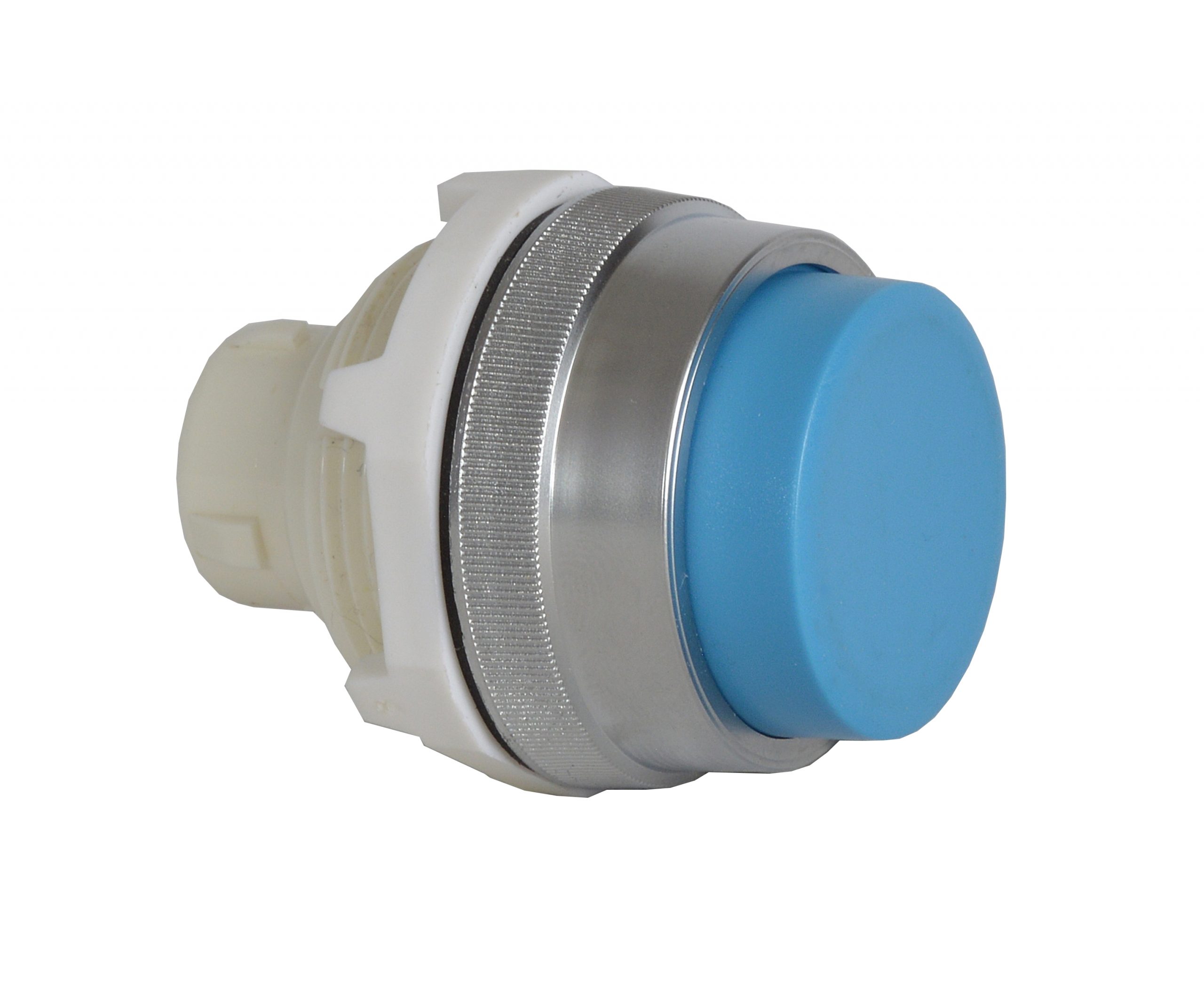 30mm Blue Projected Maintained Pushbutton Chrome Bezel