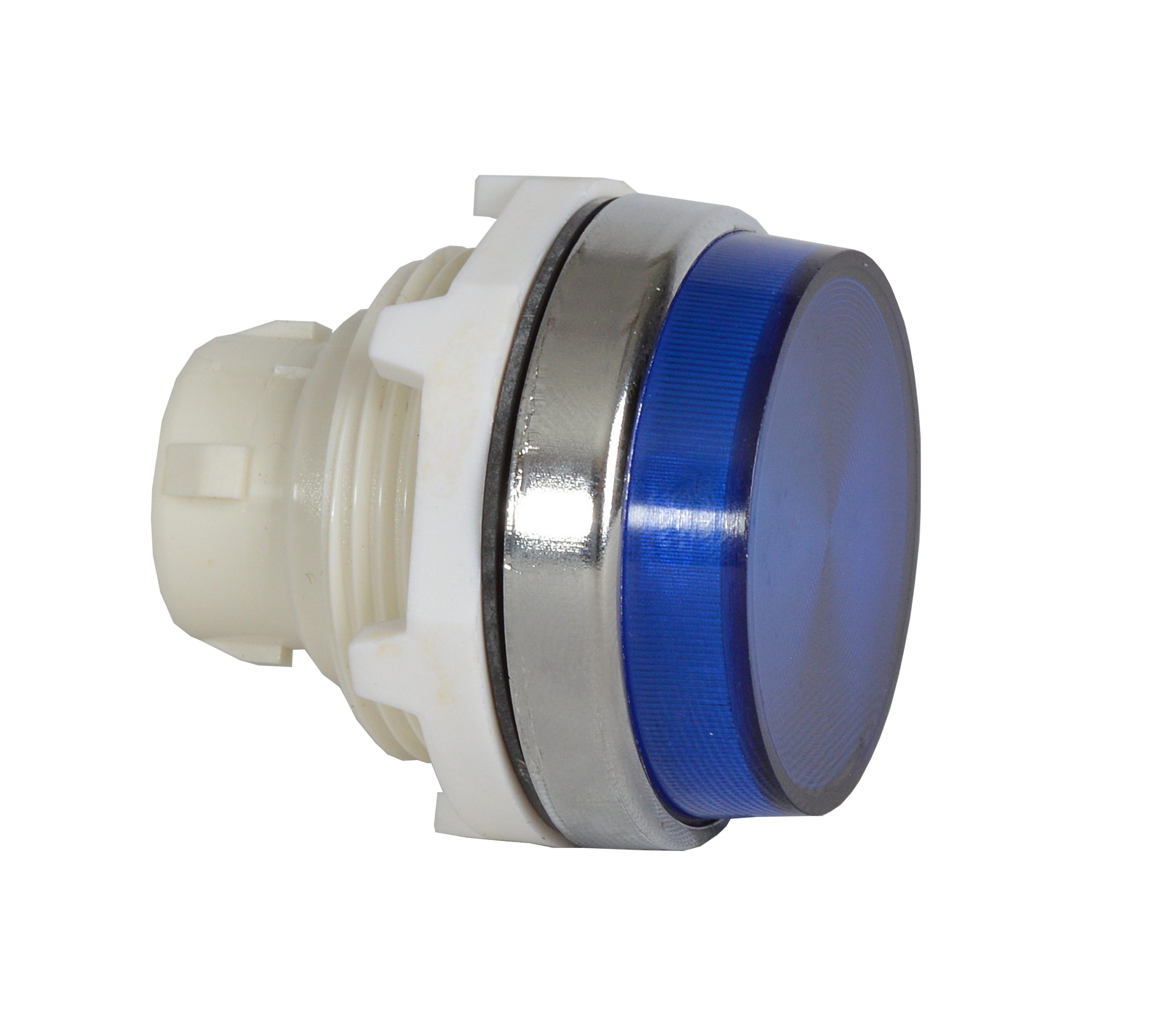 30mm Blue Pilot Light Head Ribbed Lens Chrome Bezel